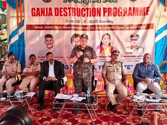 ఈ సందర్భంగా ఏర్పాటు చేసిన మీడియా సమావేశంలో డీజీపీ హరీశ్కుమార్ గుప్తా మాట్లాడారు. గంజాయి రవాణా, విక్రయాలకు పాల్పడే వారిపై కఠిన చర్యలు తీసుకుంటామని హెచ్చరించారు. గంజాయి కేసులో అరెస్టైన వారి ఆస్తులను జప్తు చేస్తామన్నారు. అనంతరం సీపీ మాట్లాడుతూ గంజాయిని అరికట్టేందుకు 8 చెక్ పోస్టులు ఏర్పాటు చేసినట్లు చెప్పారు. ఛత్తీస్గఢ్, ఒడిశా నుంచి వచ్చే బస్సులు, రైళ్లను విస్తృతంగా తనిఖీ చేస్తున్నట్లు చెప్పారు. 15 నెలల్లో 14 వేల సీసీ కెమెరాలు ఏర్పాటు చేశామన్నారు. ప్రతి కళాశాలలో ఈగల్ టీమ్స్ ఉత్సాహంగా పనిచేస్తున్నట్లు చెప్పారు. విశాఖపట్నం పోలీస్ కమీషనర్ (సీపీ) శంఖభ్రత భాగ్చి, జిల్లా కలెక్టర్ ఎమ్ఎన్ హరేంధీర ప్రసాద్, ఐజీ రవి కృష్ణ తదితరులు ఈ సమావేశంలో పాల్గొన్నారు.